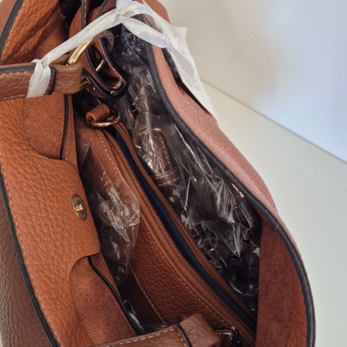 Descrizione prodottoLa borsa Melissa è l’emblema dell’eleganza funzionale. Realizzata in morbida ecopelle marrone, combina linee pulite e dettagli raffinati per creare un accessorio capiente, versatile e sempre attuale. Il suo design sobrio ma sofisticato la rende perfetta per ogni occasione, dal lavoro al tempo libero, offrendo stile e praticità in un’unica soluzione.