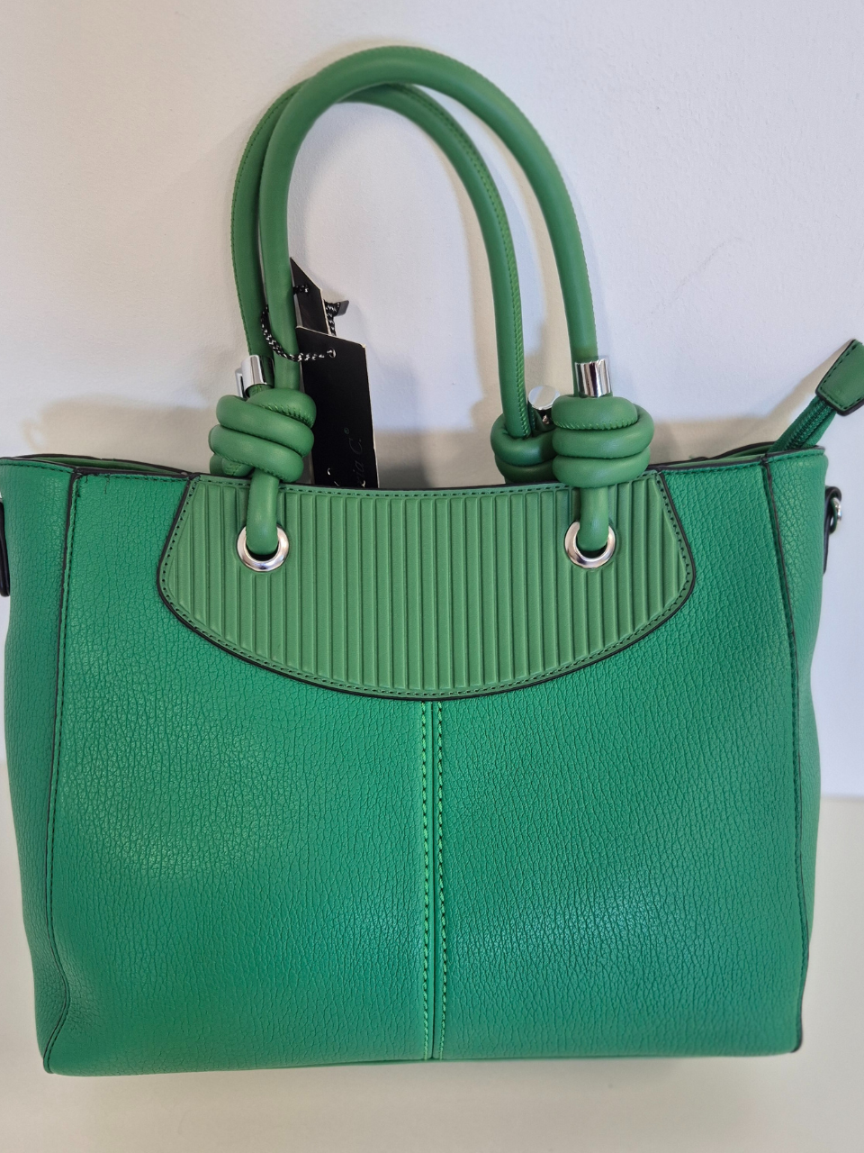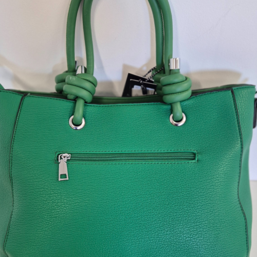 Descrizione prodottoOriginale, elegante e piena di personalità: la borsa Miranda è l’espressione perfetta di creatività e carattere. Realizzata in ecopelle di alta qualità, si distingue per i manici con elemento arricciato che donano un tocco distintivo e contemporaneo al design. Il colore verde brillante, vivace e sofisticato, illumina ogni look con stile e sicurezza, rendendo Miranda un accessorio unico e di grande impatto.