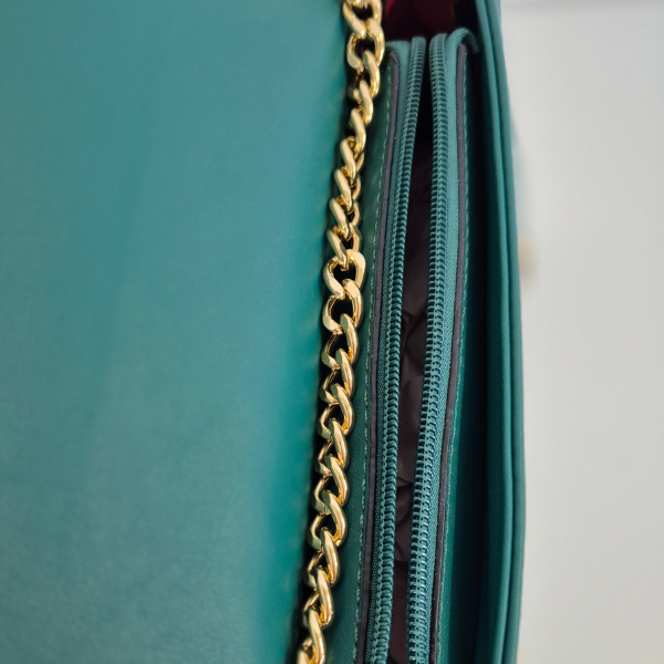 Tiffy nasce per rappresentare la perfetta fusione tra eleganza e modernità. Il design trapuntato e la catena dorata creano un equilibrio armonioso tra lusso e praticità, mentre il colore Tiffany aggiunge un tocco di freschezza e femminilità. Ogni dettaglio è pensato per offrire stile e versatilità, rendendo Tiffy una clutch bag iconica e contemporanea.