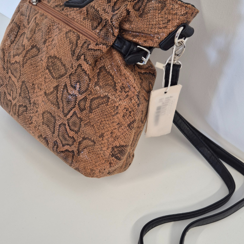 Dettagli: Stampa rettile su tutta la superficie, finiture curate e accessori metallici tono oro